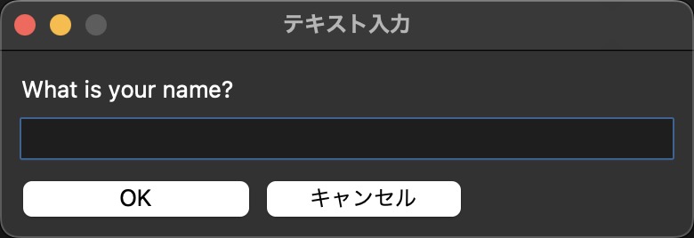 | input | テキスト入力ダイアログ | TkEasyGUI.input(”input dialog”) |