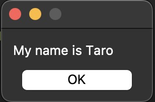 テキスト欄に「Taro」を入力し「OK」をクリックすると、下記のような画面が表示されます。